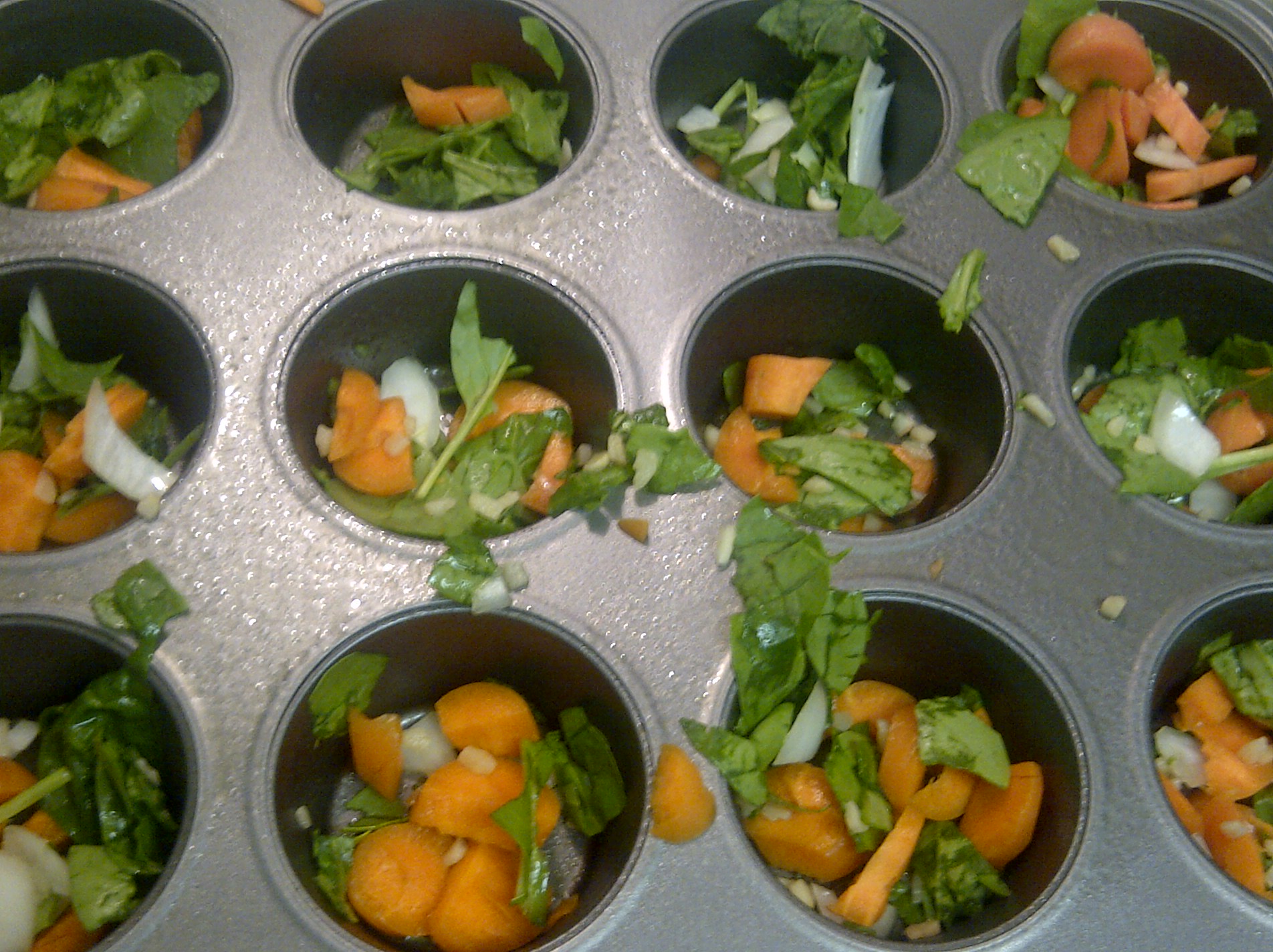 Step 1: Place veggies in muffin tins.